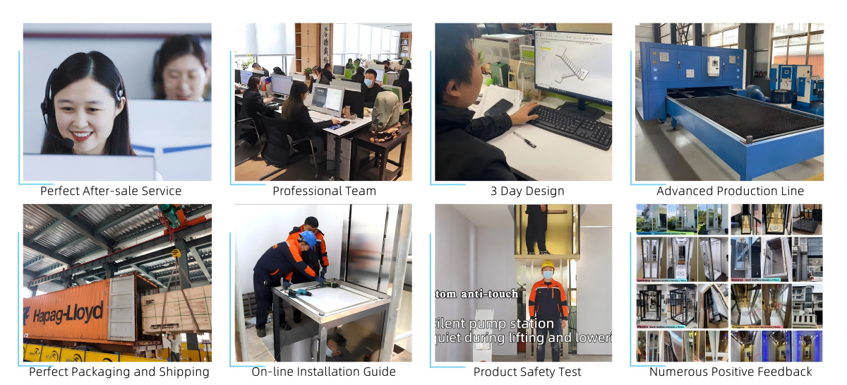 The company has advanced professional production equipment and dozens of R&D designers. It provides considerate private customization services according to customers' different spaces, completes precise measurements, designs, drawings, and model construction, and ultimately completes the product with 100% matching of manufacturing. With the production concept that safety is the lifeblood and quality is the driving force, we fully ensure the exquisite craftsmanship, strive for product excellence, and open the era of intelligent manufacturing of elevators! We have been on the road of continuing to work hard. Double insurance and free backup of core components, quick response in half an hour, 7*24 hours online service, and an after-sales service system that combines online and offline services allow customers to enjoy Zhongcan’s services anytime and anywhere.