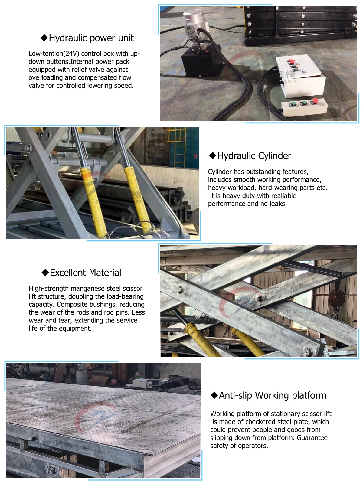 Its hydraulic system operates smoothly and the lifting speed can be adjusted. The platform surface is made of anti-slip steel plates, capable of carrying loads of several tens of tons. It can be used as a car lift or a cargo elevator. It can be customized both indoors and outdoors as needed. This can significantly reduce labor and material costs, and solve problems such as insufficient personnel and low efficiency. It can also be made mobile, and can be moved to any location as needed, which is both convenient and efficient.