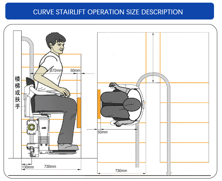 The chair arm rest can fold up. When folding the armrest, seat and foot pedal will fold up at the same time ensuring to reverse enough space for people to pass by when the lift is not in use.